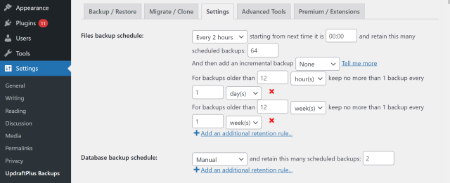 You can set advanced retention rules from this same tab. This feature lets you automatically remove older backups after a certain time period.
